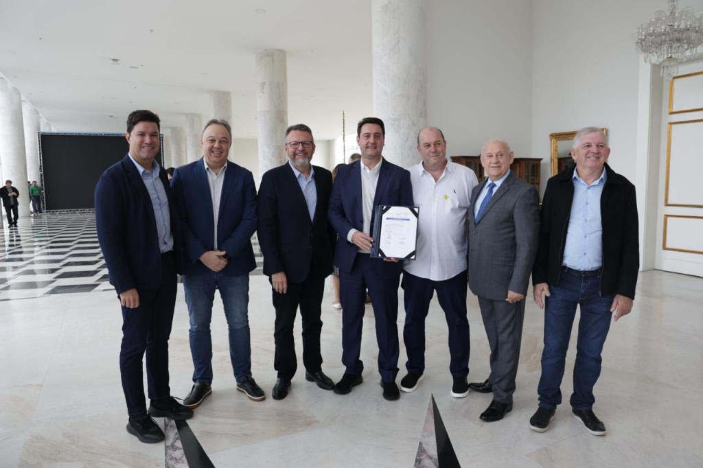 O contrato foi oficializado no Palácio Iguaçu, com a presença do governador Ratinho Junior (PSD), diretor-presidente da Sanepar, Wilson Bley, prefeito de Verê, Paulo Weissheimer (PRD), secretário das Cidades, Guto Silva, além do deputado estadual Ademar Traiano (PSD), e do diretor comercial da Sanepar, Bihl Zanetti.